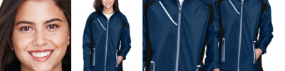 100% polyester heathered wicking knit top body, collar and sleeves ; 100% polyester wicking knit solid bottom body ; Ladies' fit ; Pad print label ; Quarter-zip pullover style; Self-fabric collar ; Set-in sleeves ;