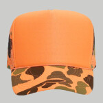 49-131 OTTO Neon Camouflage Polyester Foam Front Five Panel High Crown Mesh Back Trucker Hat