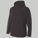 100% water resistant polyester; Moisture wicking, odor resistant, stain release; Adjustable drawcord at waist and hood; Hook & loop closure at cuff; Vented back; Two front zippered pockets;