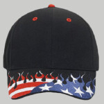 58-756 OTTO United States Flag Flame Pattern Visor Brushed Cotton Twill Six Panel Low Profile Baseball Cap