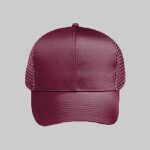 65% Polyester 35% Cotton 100% Nylon Mesh Back The Professional Look Structured Firm Front Panel 6-panel cap Seamed Front Panel with Full Buckram Pro Stitch on Crown 8 Rows Stitching on Visor Matching Fabric Undervisor Matching Color Sweatband Plastic Adjustable Snap