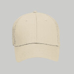 100% Cotton Front 100% Polyester Mesh Back Structured Firm Front Panel Low-Fitting 6-panel cap Seamed Front Panel with Full Buckram 2 Sewn Eyelets Pro Stitch on Crown Matching Fabric Undervisor Matching Color Sweatband Plastic Adjustable Snap