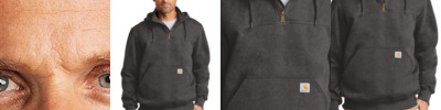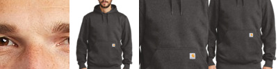 For those days when a heavy jacket is just too much to wear on the job, this durable, water-repellent sweatshirt is the solution. 13-ounce, 75/25 cotton/poly blend or 55/45 cotton/poly blend with Rain Defender durable water-repellent finish (Black, New Navy)* 55/45 cotton/poly blend (Carbon Heather) Attached jersey-lined three-piece hood with drawcord closure Antique-finish brass front zipper Two front hand warmer pockets with hidden security pocket inside Stretchable, spandex-reinforced, rib knit cuffs and waistband Carhartt label sewn on left hand warmer pocket *Please note: Select colors in Carhartt fleece are currently transitioning from a 75/25 cotton/poly blend to a 55/45 cotton/poly blend. Weight and fabric properties remain the same. Your order may contain a combination of both fabrics.