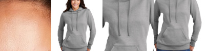 - 8-ounce, 94/6 polyester/spandex fleece
