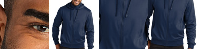 Designed with an active workplace in mind, this jacket is ideal for light layering. 5.9-ounce, 100% polyester smooth-faced fleece Zip-through collar Three-panel hood with matte black eyelets and wide dip-tipped drawcords Molded center front zipper Open hand pockets Rib knit cuffs and hem