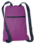 Available in several vibrant colors, this soft cotton cinch pack has contrast webbing straps and a large zippered pocket for additional storage.