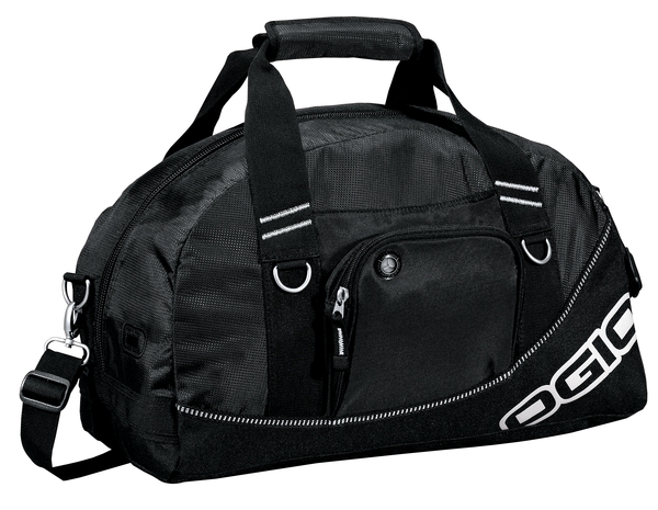 Sized to fit the gym locker, this duffel opens wide to reveal a roomy interior that holds shoes and a change of clothes.